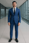 This refined blue suit is crafted from premium wool-blend fabric featuring a subtle herringbone texture. The weave gives depth and sophistication, while the breathable material ensures year-round comfort. The result? A suit that’s as versatile as it is luxurious.